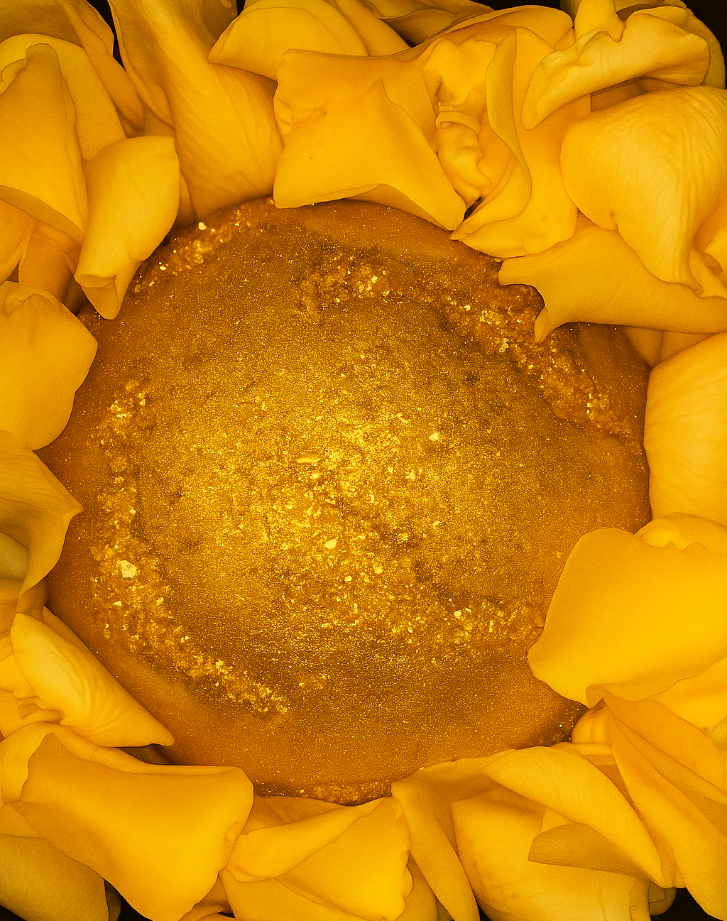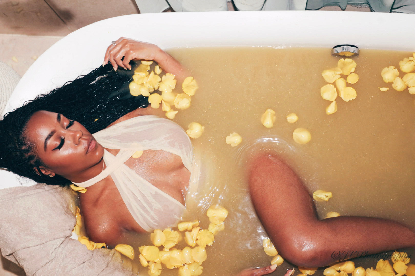 A golden Ancient Ayurvedic FLOWR bath with the Riche'-est of ingredients to pamper your skin with over 3,000 years of knowledge rooted in traditional Indian herbal perfection.