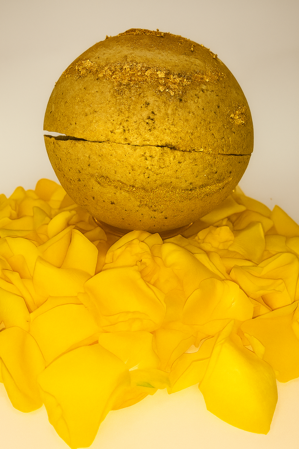 Sodium Bicarbonate, Citric Acid, Corn Starch, Cream of Tartar, SLS, Neem Powder, Ashwagandha, Gotu Kola, Aloe Vera Powder, Fenugreek, Triphala, Tumeric, Rose Water, Sesame Oil, Vegetable Glycerin, Fragrance Oil, Gold Mica, Biodegradable Glitter, Epson Salt