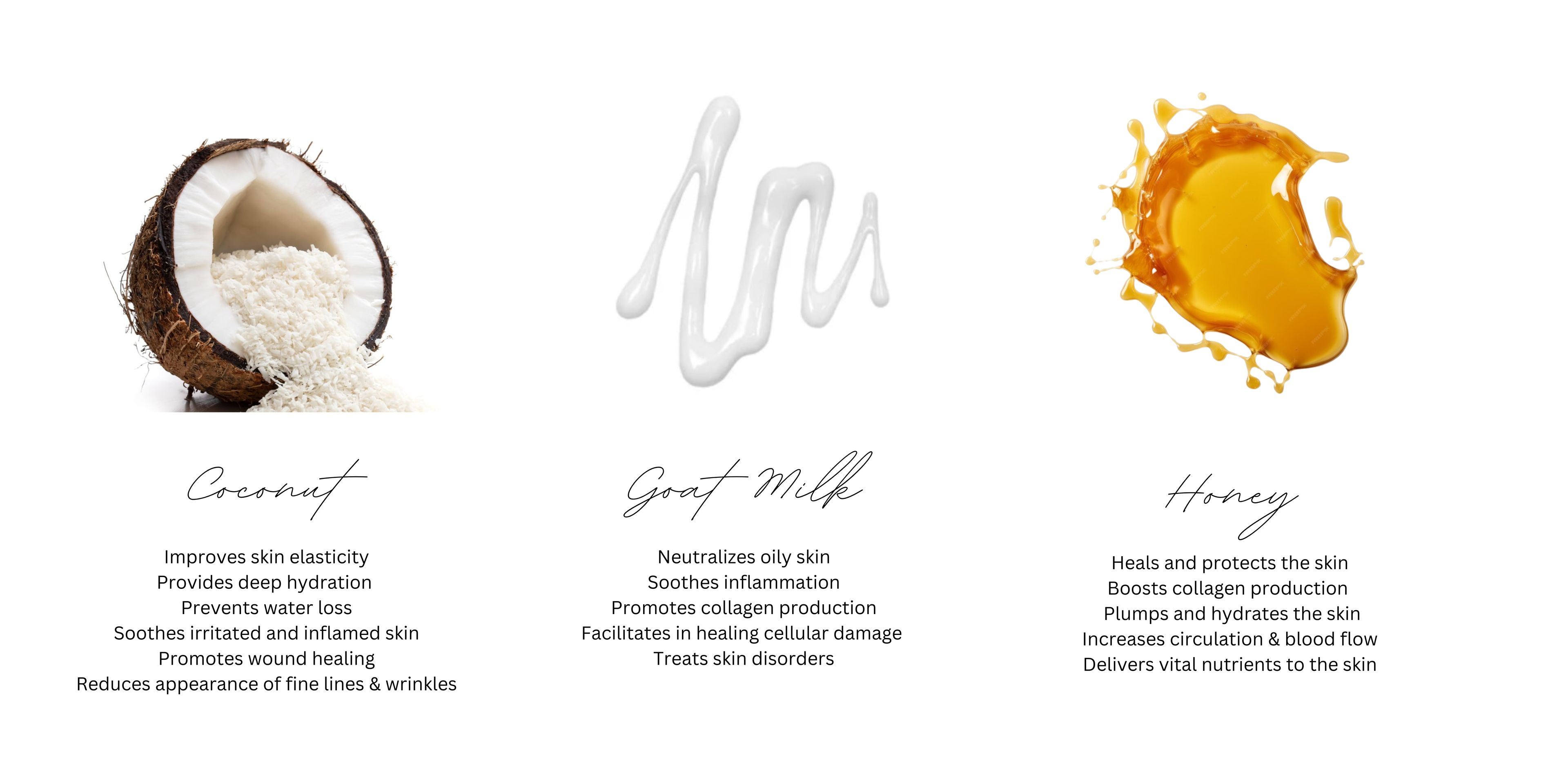 A silky discovery made with the "creme de la creme" of milks, goat and coconut, will leave your skin soothed, supple, and hydrated to the touch.