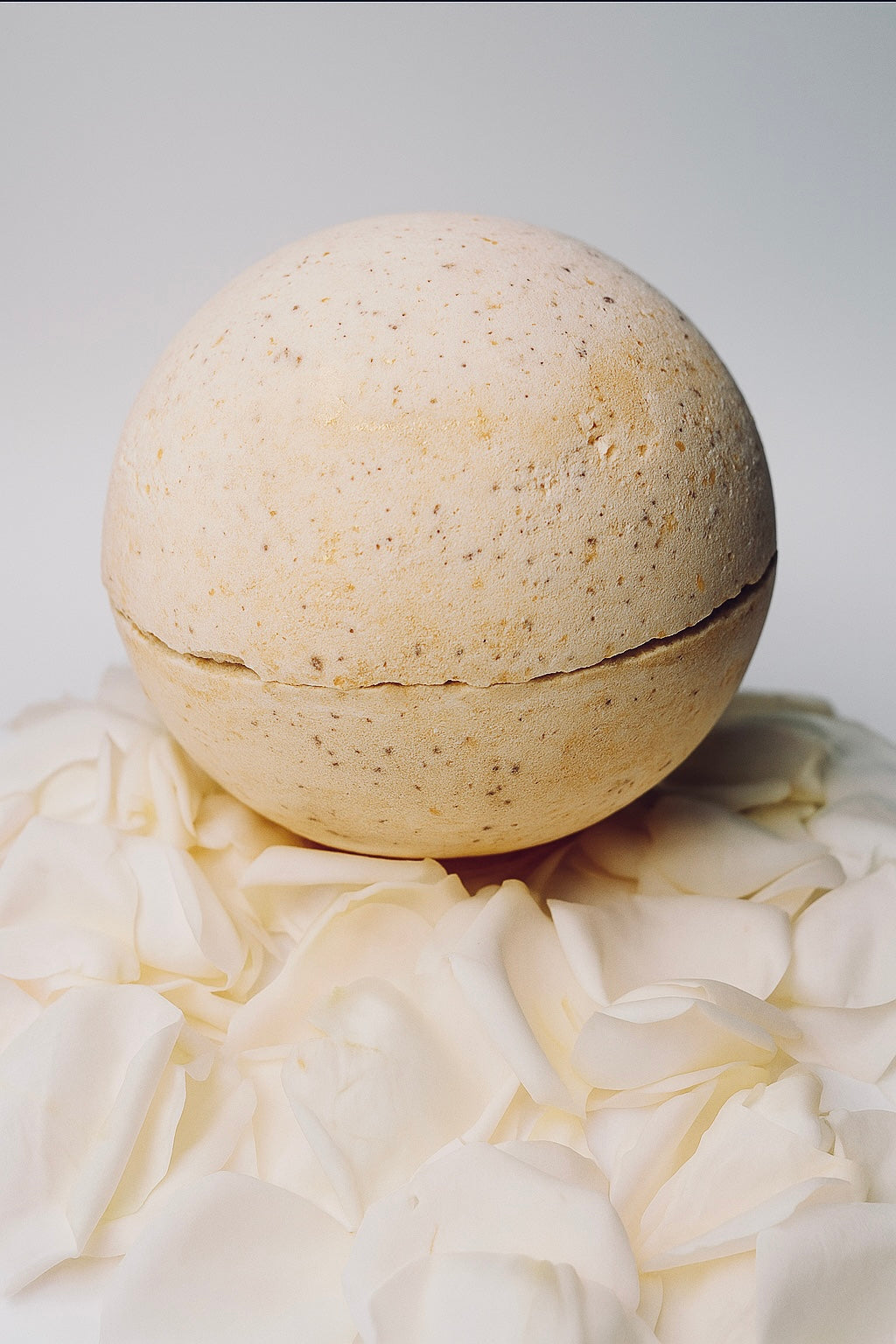 Sodium Bicarbonate, Citric Acid, Corn Starch, Coconut Milk, Goat Milk, Ascorbic Acid (Vit. C), Colloidal Oatmeal, Honey Powder, Vegetable Glycerin, Coconut Oil, Fragrance Oil, Rose Essential Oil, Sandalwood Essential Oil, Ylang-Ylang Essential Oil, Clary Sage Essential Oil